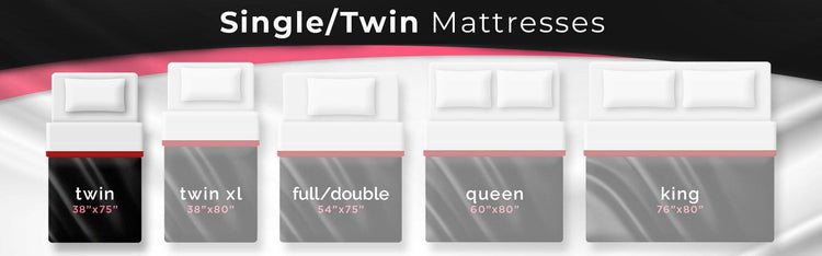 Twin/Single size mattresses are perfect for those who need a compact sleeping solution. Measuring 38in x 75in (96.5cm X 190.5cm), these mattresses are ideal for children's rooms, guest rooms, or small bedrooms. Despite their smaller size, our twin/single size mattresses don't skimp on comfort and support. Many high-quality mattresses come in this size as well.